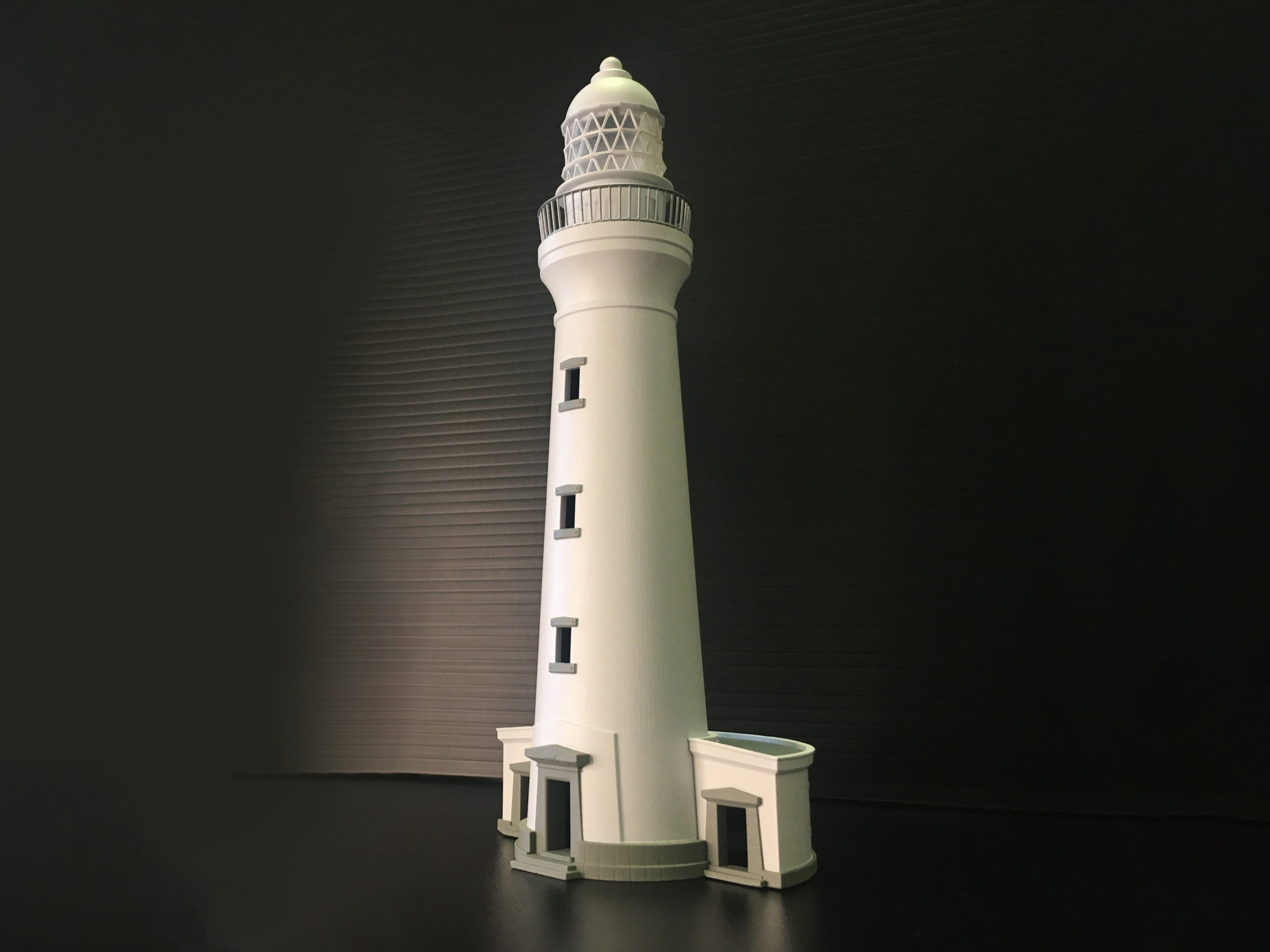 千葉県銚子市の犬吠埼灯台をモデルにした3Dプリンター出力の組み立て模型キット。